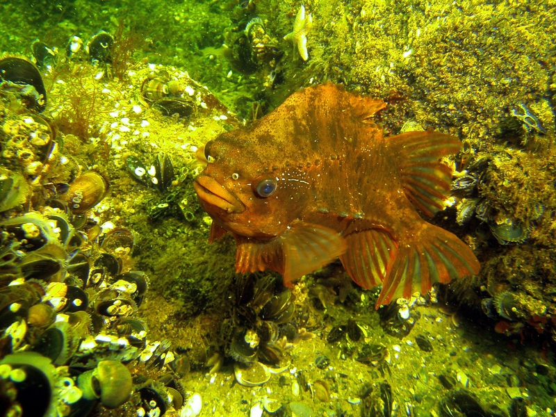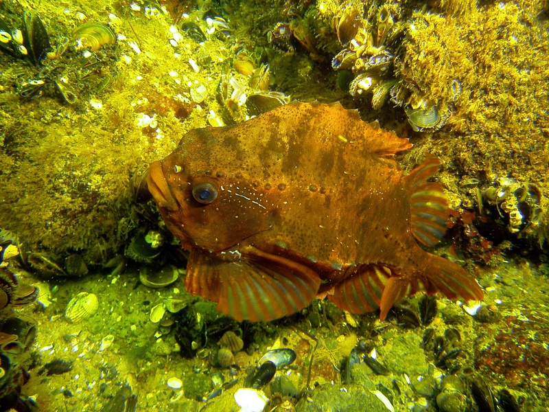 Die unterschiedlichsten Fischarten kann man hier als Taucher begutachten, denn diese fühlen sich hier besonders sicher. Im Regelfall meiden örtliche Fischer diesen Platz, da die Wahrscheinlichkeit das eigene Material zu beschädigen, durch die zahlreichen Einzelteile, die sich im Meer und auf dem Untergrund befinden, sehr hoch ist. Am häufigsten sind hier Dorsche in großen Schwärmen anzutreffen. Den schönsten Anblick allerdings, bietet das große Fischernetz, welches über und über bewachsen ist und an eine freistehende Wand erinnert.